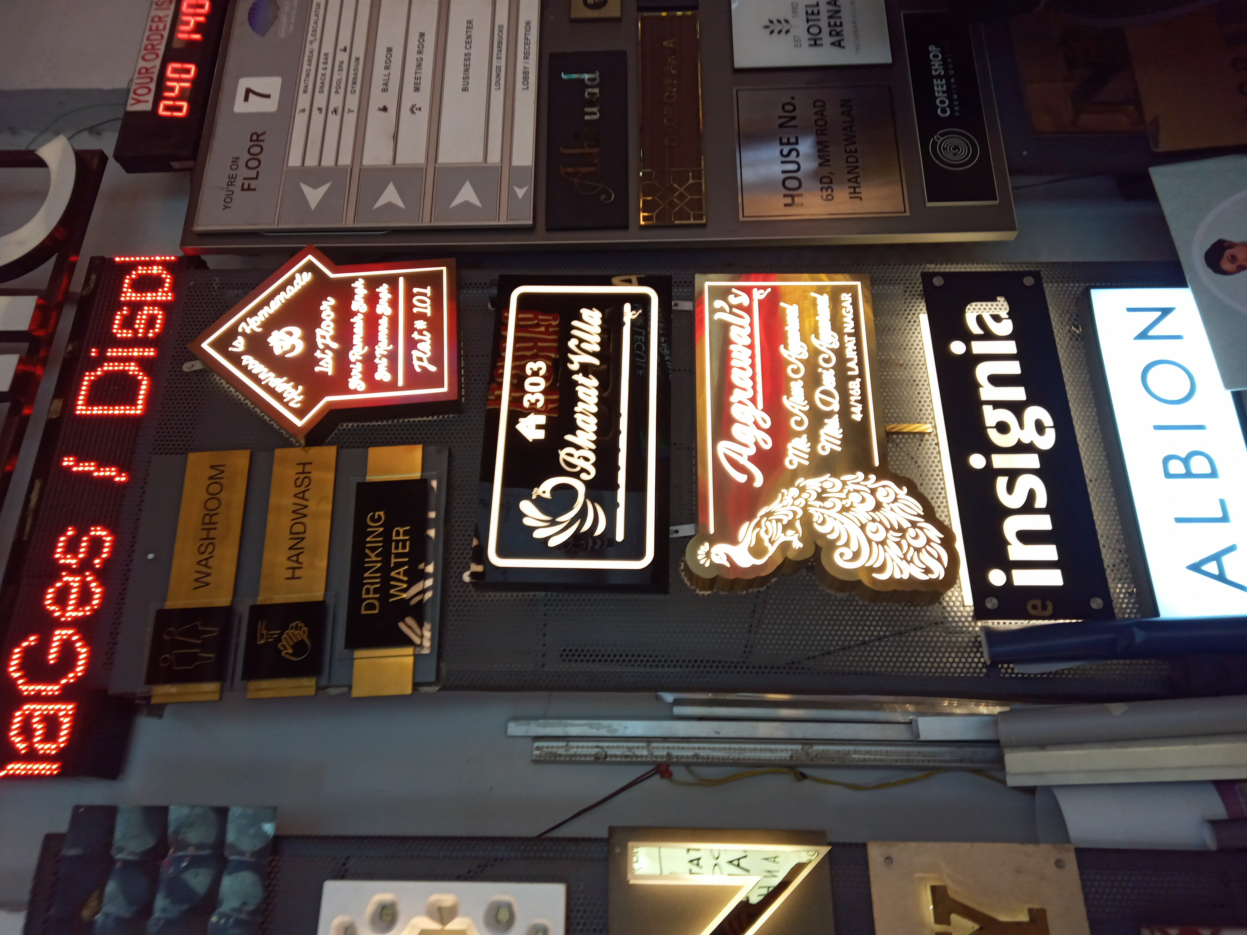 Insignia in Paharganj, Delhi, provides a wide range of signage-related services, including: Manufacturing and Dealership of Sign Boards LED Sign Boards Acrylic Glow Sign Boards Digital Sign Boards ACP Sign Boards Metal, Steel, and Aluminium Sign Boards Plastic and Flex Sign Boards Reflective and Traffic Sign Boards Advertising and Display Solutions Advertising Agencies for Buses and Display Boards Display Board Manufacturing and Dealership Digital Signage and Scrolling Display Boards Electronic and Exit Sign Boards Customization and Repair Services Modular Signage Dealers Signage Layout Design Sign Board Repair & Services This suggests that Insignia specializes in both commercial and safety signage solutions, offering a variety of options for different business and public needs.